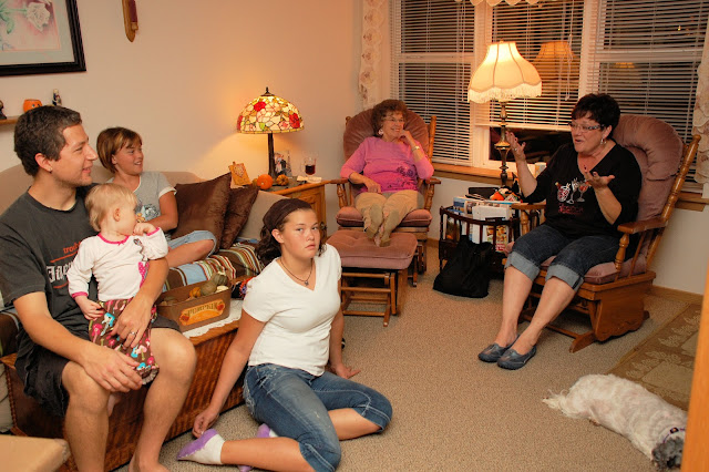 This year the first dinner was at Aunt Maria's. Us "kids" owned the kitchen while the matriarchs took the night off. It's nerve wracking to cook for these women...thus the beer & wine trip "to town." We packed ourselves into her kitchen and crossed our fingers as we worked as a team to ensure the meal went as planned, hors devours out, drinks served, salmon and grilled veggies timed perfectly and keeping mothers out of the kitchen.